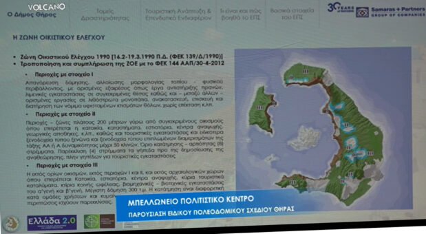 “Εκδήλωση που διοργάνωσε ο Δήμος Θήρας για το Ειδικό Πολεοδομικό Σχέδιο της Σαντορίνης, πραγματοποιήθηκε στο Μπελλώνειο Πολιτιστικό Κέντρο των Φηρών.