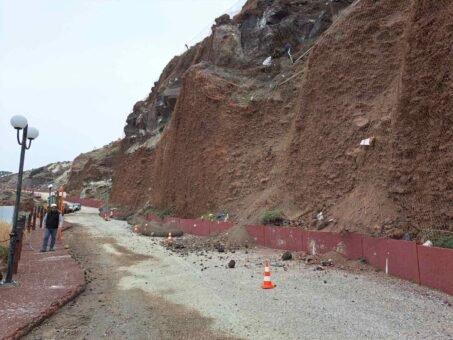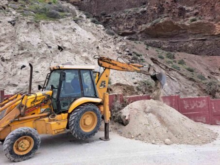 “Ο Δήμος Θήρας στα πλαίσια των έργων προστασίας της δημόσιας ασφάλειας προχωρά σε έργα για την μερική άρση της επικινδυνότητας στην οδό Οίας – Αμμουδίου.