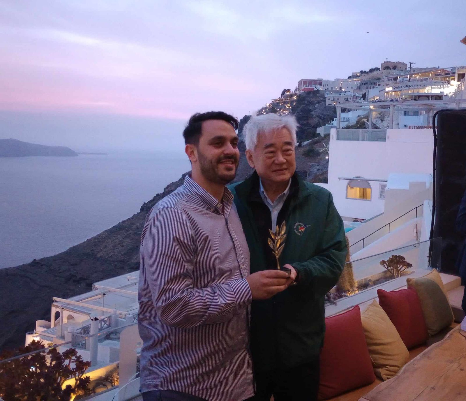Στη φωτογραφία o πρόεδρος της Ένωσης Ξενοδόχων Σαντορίνης Αντώνης Παγώνης με τον πρόεδρο της παγκόσμιας ομοσπονδίας TAEKBONTO, C. Chungwon”